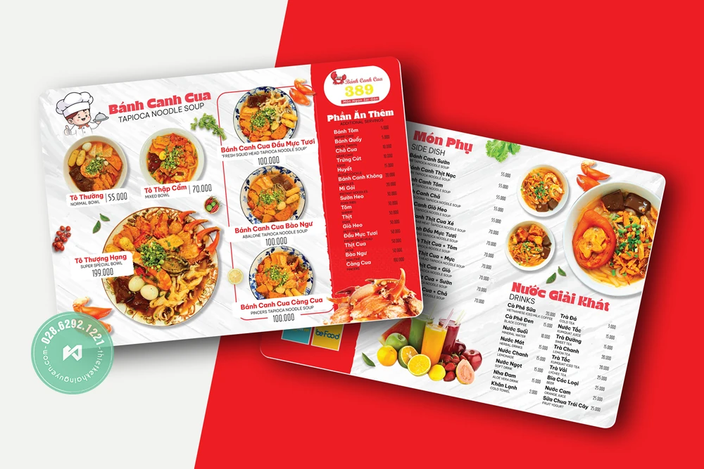 Mẫu Menu Quán Bánh Canh Cua 389 – Quán Ăn Bình Dân