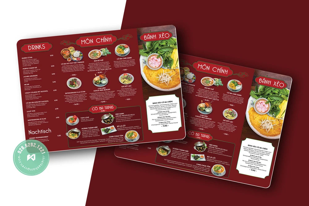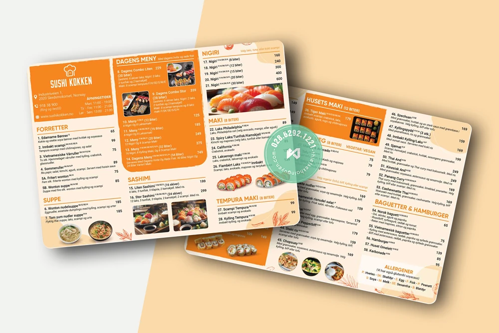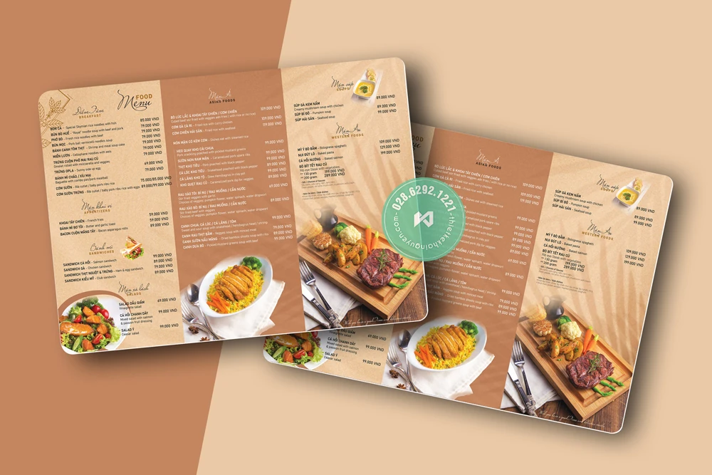 Với kinh nghiệm hơn 10 năm trong ngành thiết kế và in ấn F&B, Khải Nguyên cam kết mang đến cho bạn những chiếc menu không chỉ BỀN mà còn ĐẸP, bố cục khoa học, chuẩn Marketing.