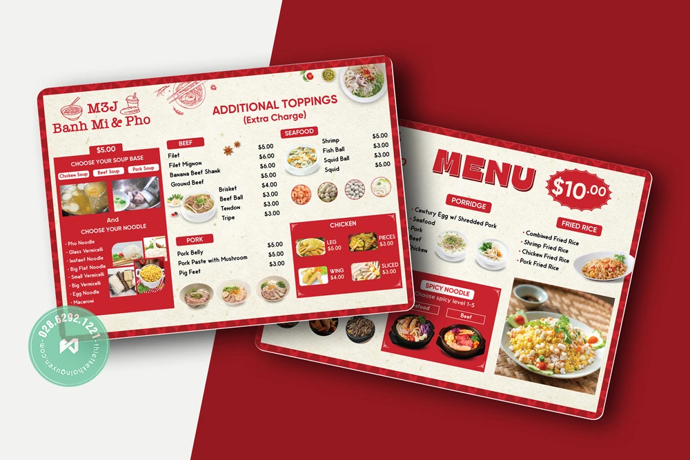 Mẫu Menu Bảng M3J Banh Mi & Pho – Thức Ăn Nhanh