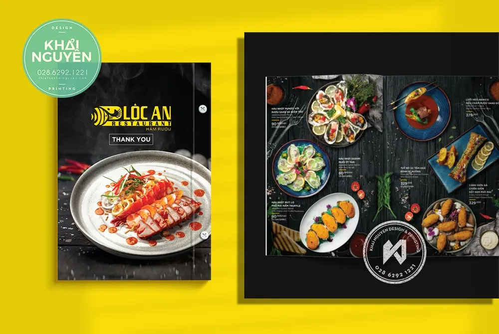 Khách hàng có nhu cầu thiết kế những mẫu thực đơn nhà hàng đẹp cho riêng mình. Xin vui lòng liên hệ với chúng tôi để tư vấn chi tiết. Cảm ơn quý khách đã ghé thăm Khải Nguyên, vui lòng tham khảo những sản phẩm khác tại website thietkekhainguyen.com/.