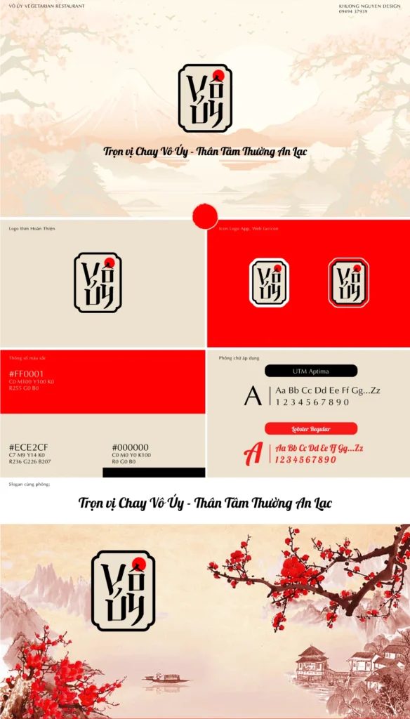 Khác với sự sôi động, rực rỡ của các mô hình F&B thông thường, thiết kế nhận diện cho một nhà hàng chay luôn đòi hỏi ngôn ngữ hình ảnh mang đậm tính thiền (Zen), khơi gợi sự tĩnh lặng, thanh tịnh và an yên cho thực khách. Logo Nhà Hàng Chay VÔ ÚY là một tác phẩm đồ họa điển hình thể hiện trọn vẹn tinh thần đó thông qua từng đường nét.