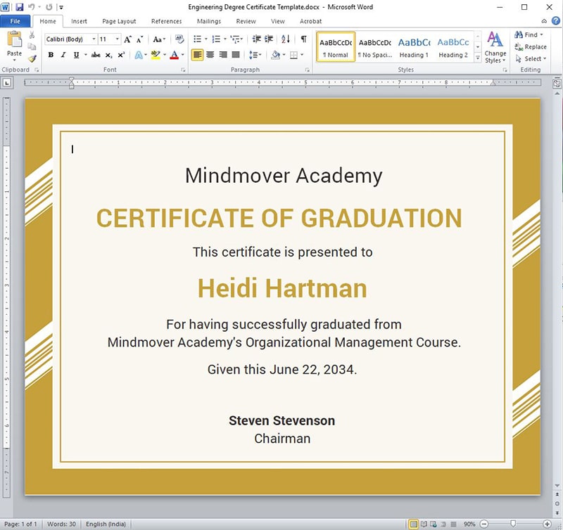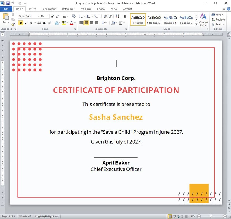 Cuối cùng là sự sáng tạo của riêng bạn. Hãy thêm chút không khí cho mẫu bằng khen này thực sự biến thành tác phẩm của bạn.