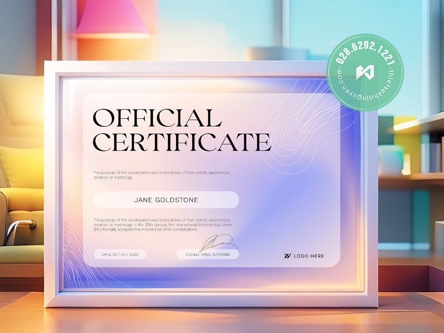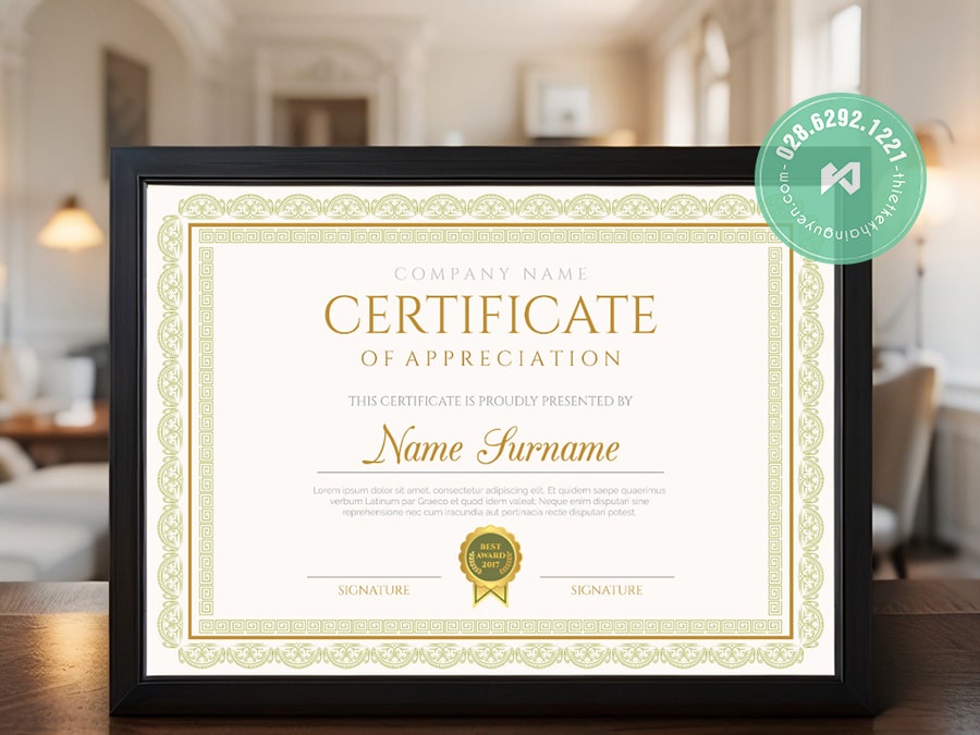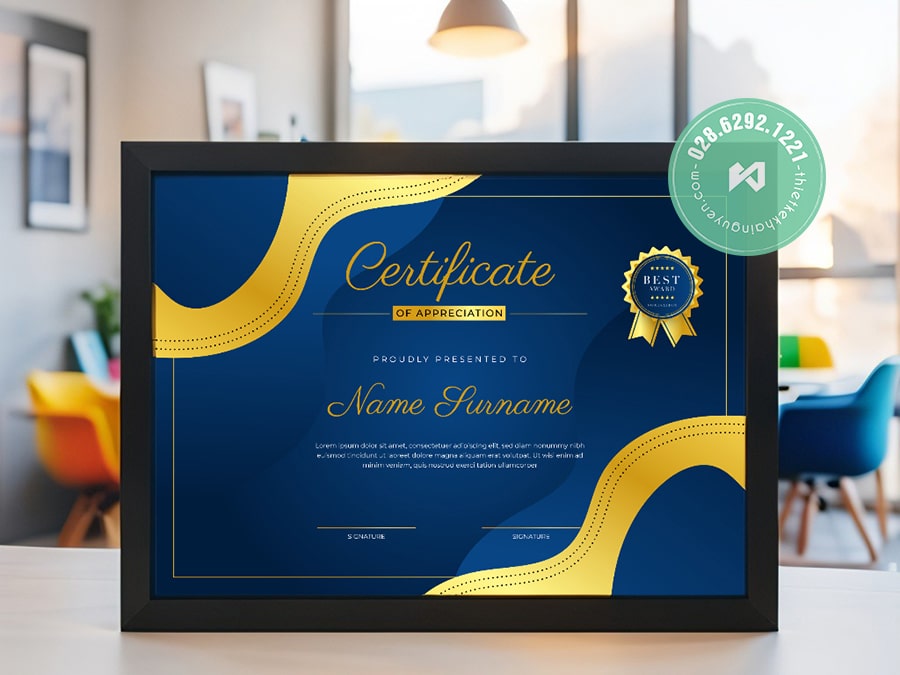 💬 Phù hợp với: Doanh nghiệp, tổ chức quốc tế, sự kiện vinh danh nhân viên, giấy chứng nhận đối tác.